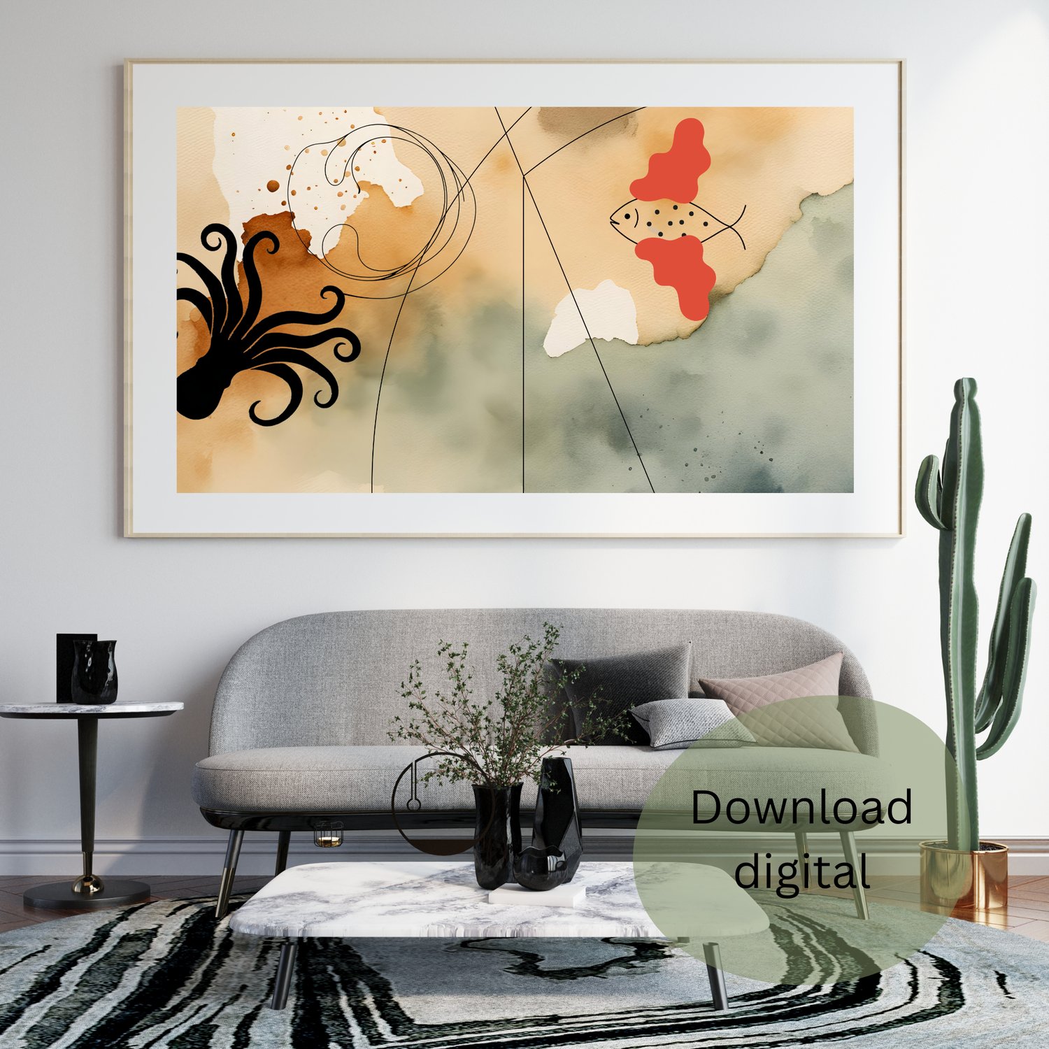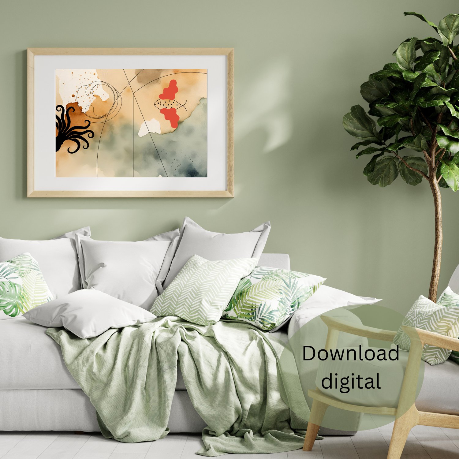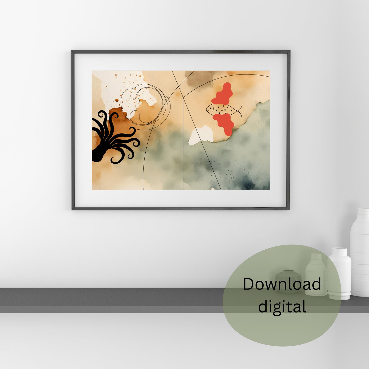 Dê um toque moderno e sofisticado ao seu espaço com esta arte digital exclusiva! 🌿✨ Perfeita para qualquer ambiente, esta peça combina tons neutros e um design abstrato harmonioso.