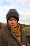 Ce bonnet peut être tricoté avec un seul fil de qualité sport ou plusieurs brins tricotés ensemble donnant une épaisseur équivalente (par exemple, un fil de qualité fingering avec un fil dentelle en mohair).