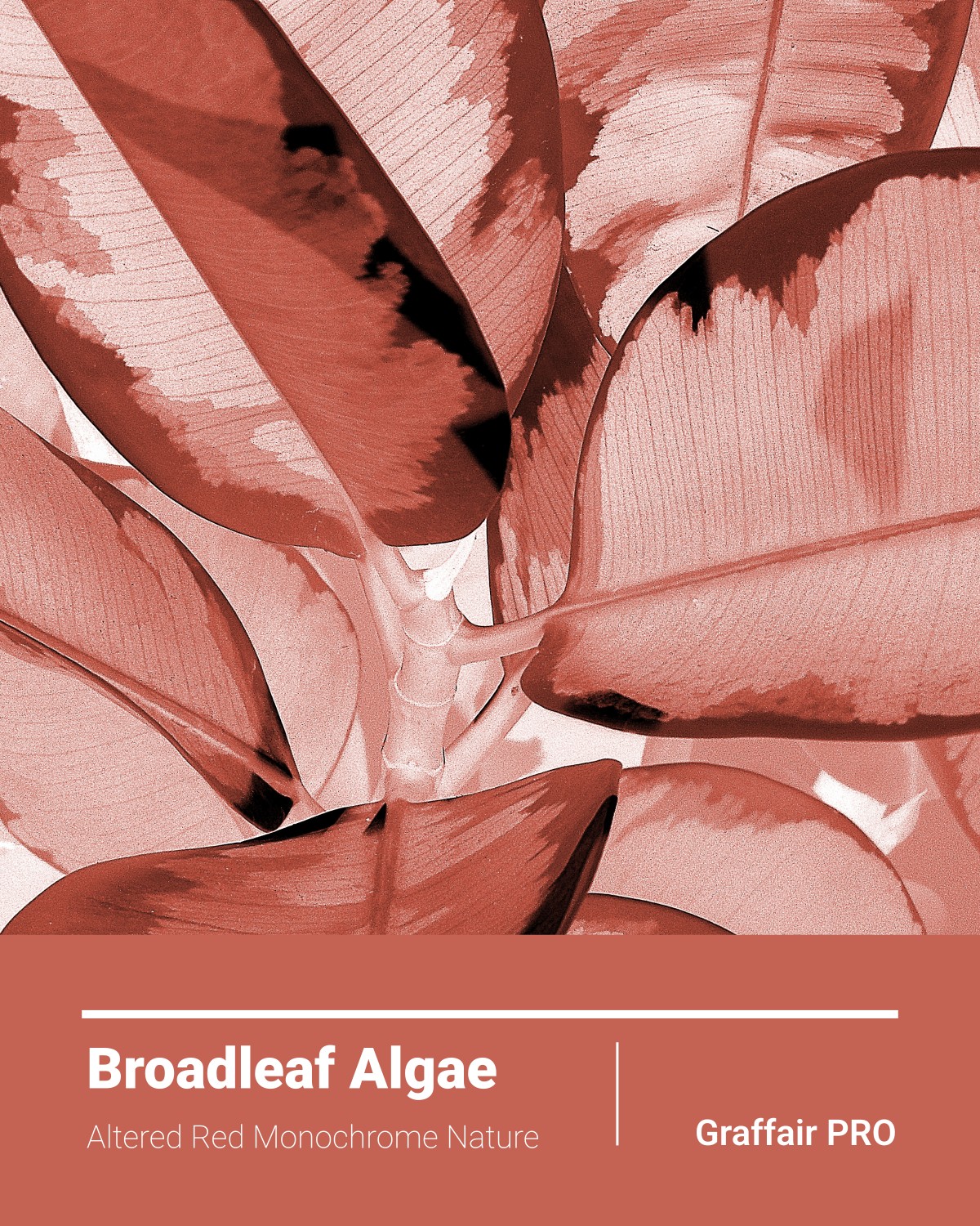 Βroadleaf Αlgae: A digitally manipulated photograph of a not-so-ordinary algae with broad leaves in an altered red monochrome tint.