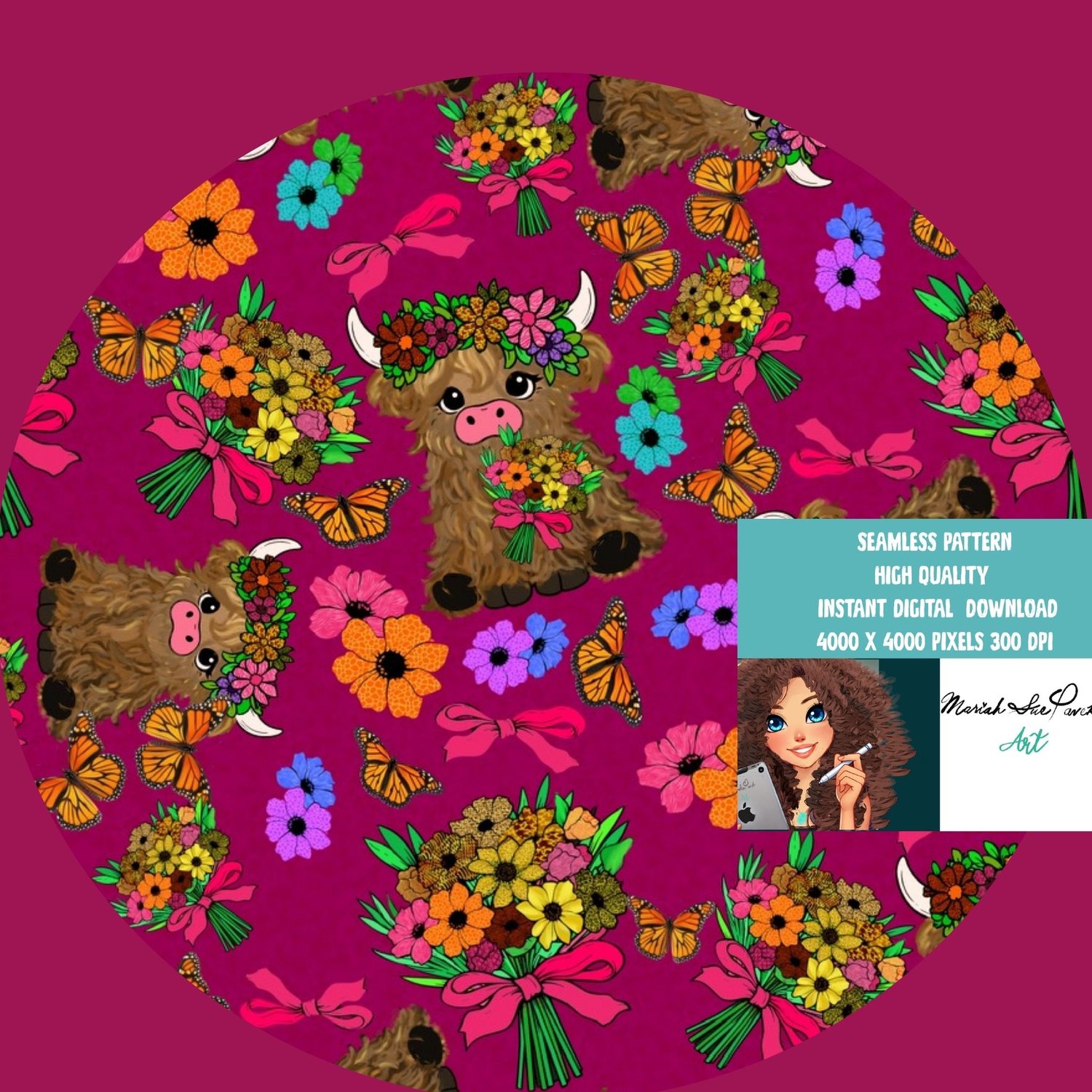 Stay Wild Highland Seamless Pattern - Pinks & Purples