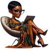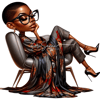 Introducing "Chic Confidence," an exclusive collection of 10 PNG images, plus a free bonus image, (only 9 shown due to amount of allowed to upload) showcasing the extreme caricature of a black woman radiating confidence and intelligence. Each image captures her in a modern, high-fashion pixie cut and chic glasses, embodying the essence of contemporary style and sophistication. Dressed in a luxurious, flowing Ankara print robe, her attire boasts rich colors and intricate patterns, elegantly draping as she lounges in an avant-garde chair.