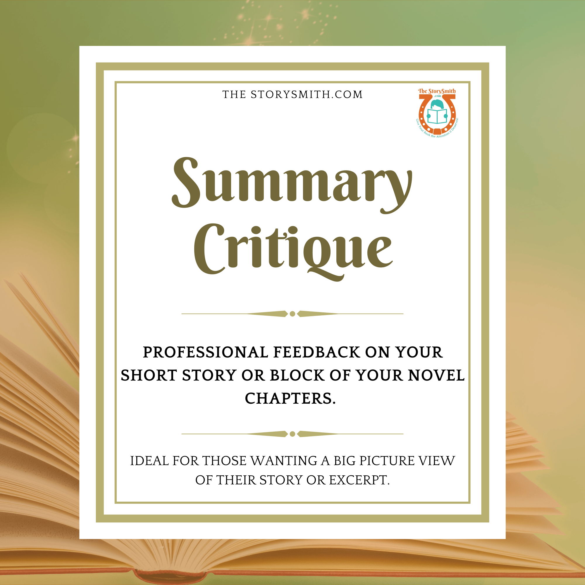 Not only will you get sound advice from the critique, as a StorySmith customer you get free access to my private Facebook group where you can discuss writing and publishing or get support and inspiration.