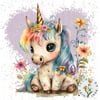Watercolour Unicorn with Purple Heart, No Text. PNG/Clipart