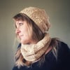 A pretty lace work cowl worked in the round. The pattern makes for a comfortable squidgy fabric.