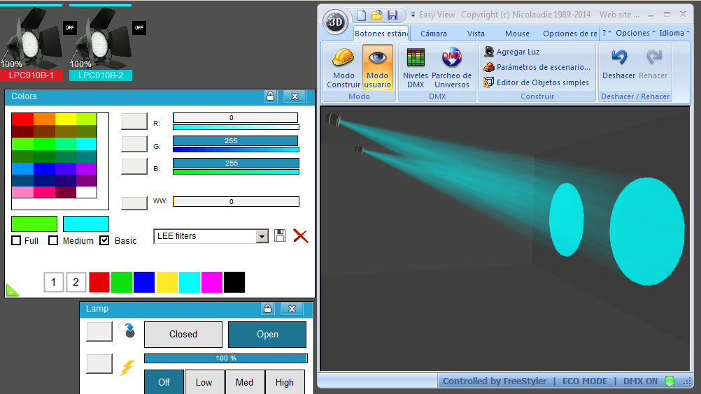 Esta Librería SSL2 está optimizada para trabajar con Magic 3d Easy View. Es decir para ver una representación 3D de las secuencias que estemos realizando con Freestyler, QLC+ o cualquier otro soft que se conecte con Magic 3d.