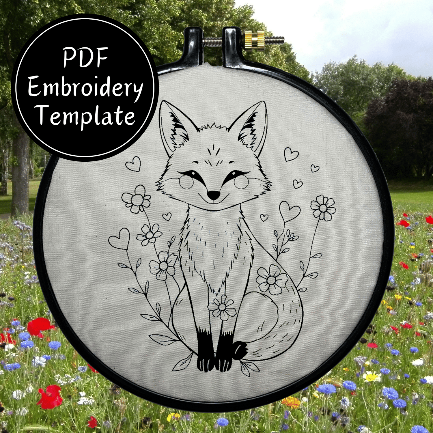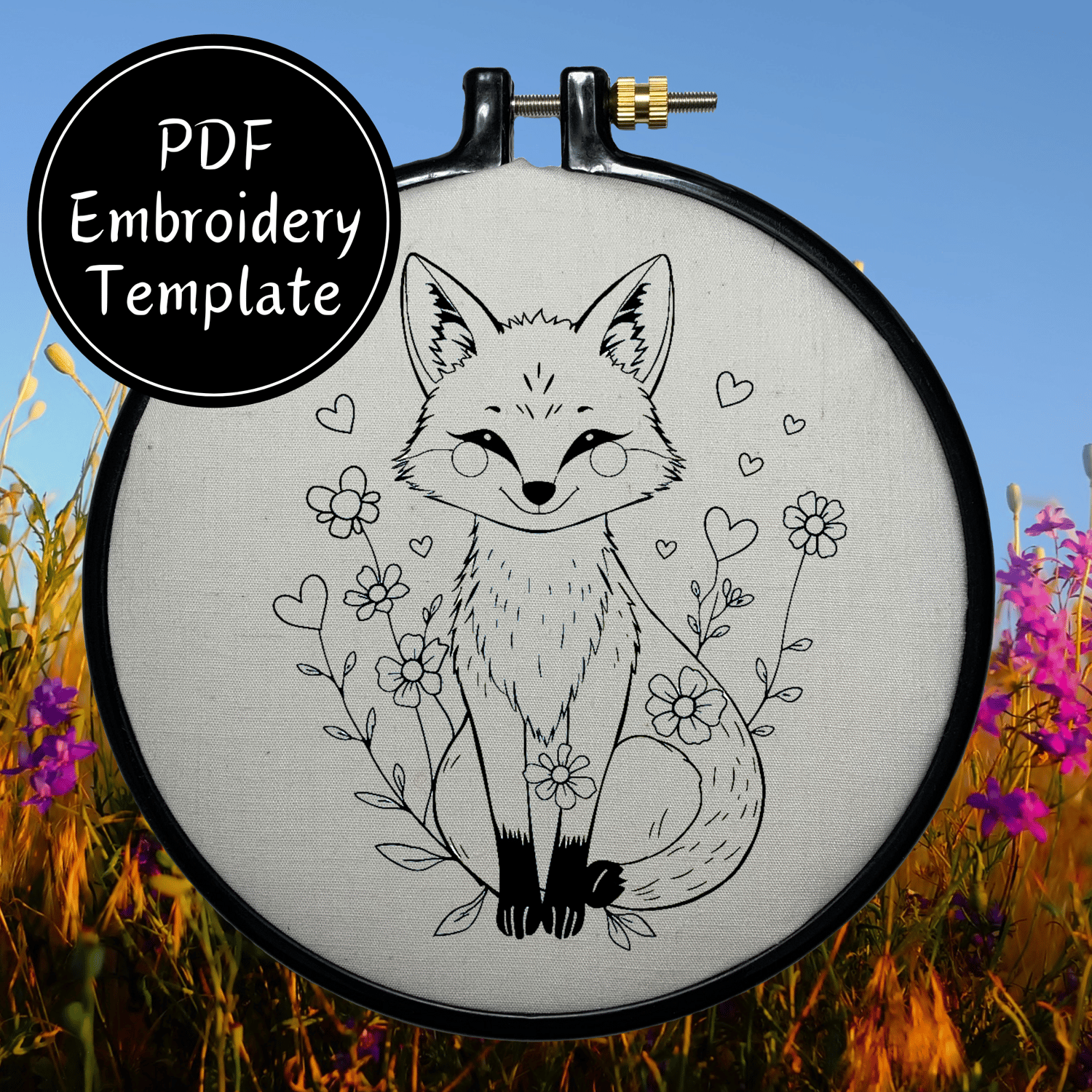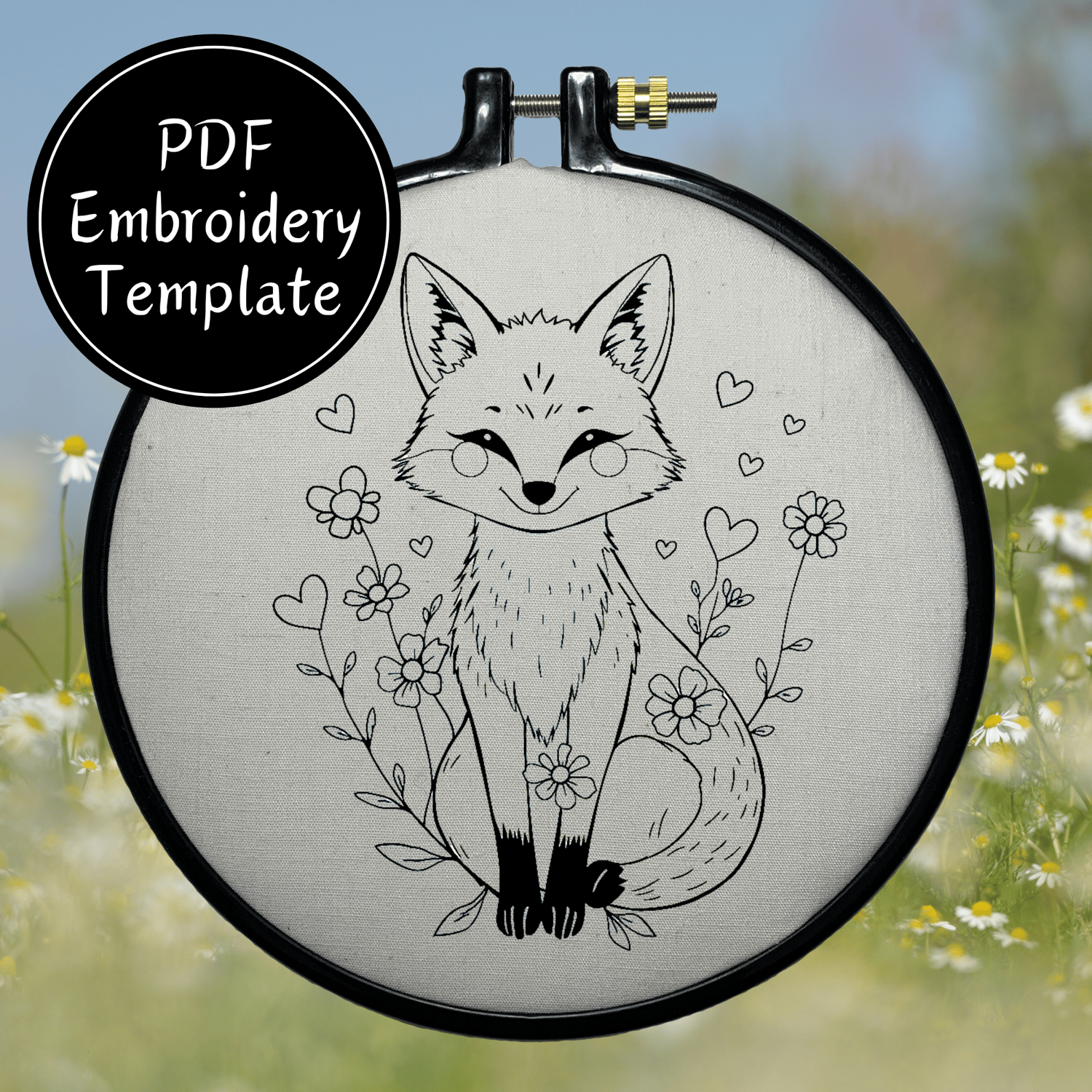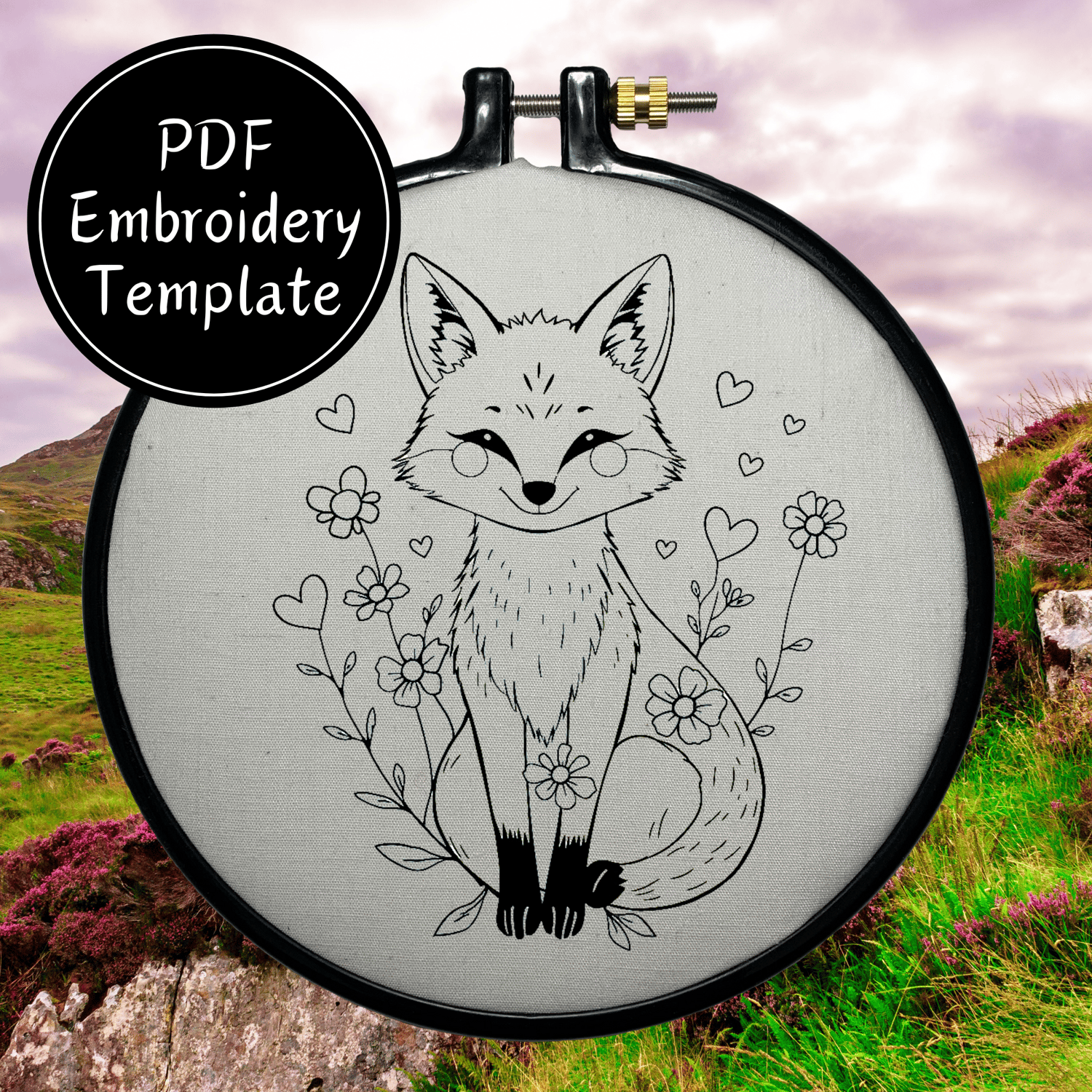 Valentine Fox & Flowers Hand Embroidery Pattern DIY Embroidery