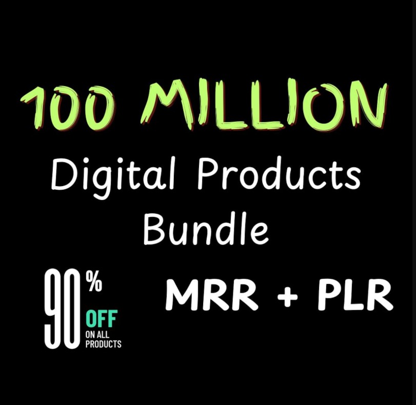100M+ Digital Products Mega Bundle (MRR + PLR) – Resell & Rebrand | Ebooks, Templates, Graphics, Courses & More
