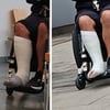 We later see him again outside at an orthopedic practice. In the meantime he has removed his sock and we can admire his toes on a toe plate.