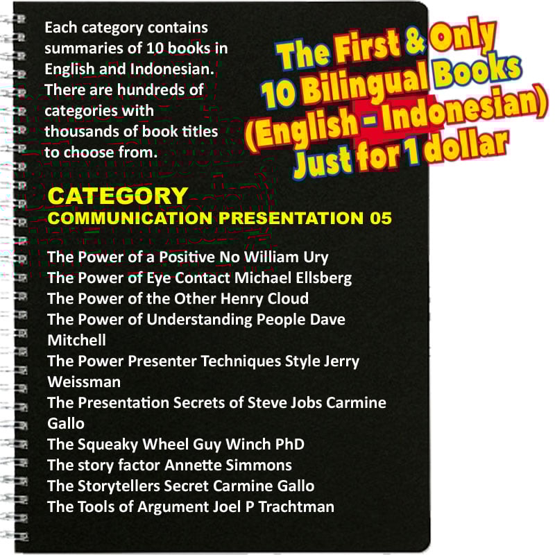 · Untuk 10 buku summary dalam 2 bahasa (English-Indonesian), hanya perlu 1 dollar saja, atau Rp.16.000,-