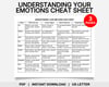 Understanding Your Emotions Cheat Sheet, Emotional Intelligence, Emotions Wheel, Feelings Chart, Emotion Focused Therapy, Self Awareness