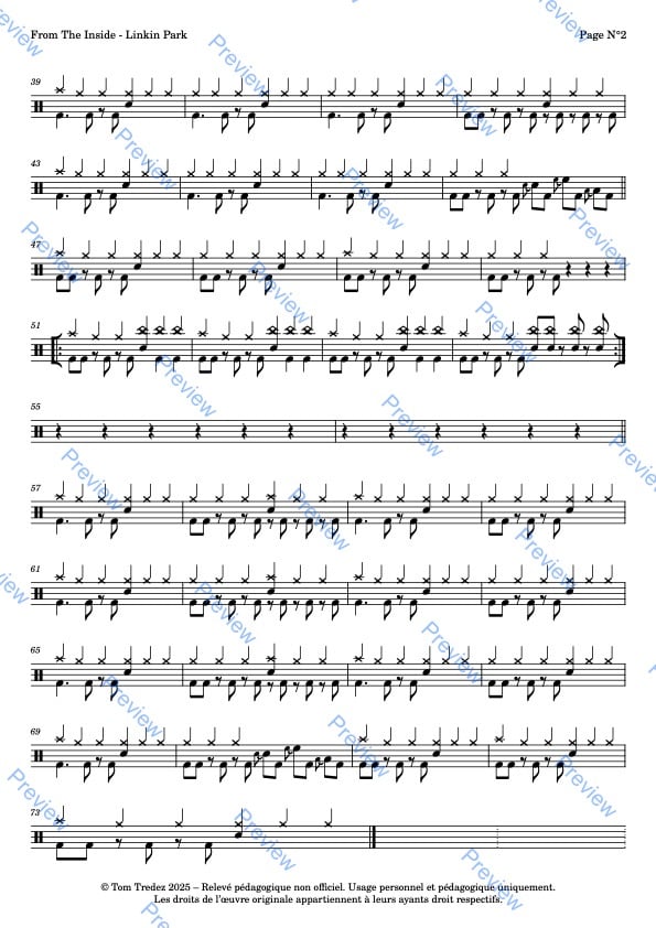 Partition complète de From The Inside - Linkin Park, réarrangée pour la batterie, reprenant à l'identique la version de l'album.