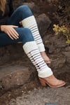 The leg warmer is worked bottom up, in the round. Single-round stripes of colour with a bobble at the beginning of the round add a pop of colour.