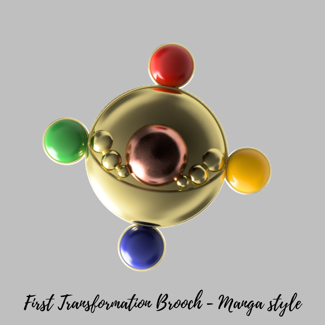 - 1st transformation Brooch: 7 cm wide for the Anime style and 8,3cm for the manga style