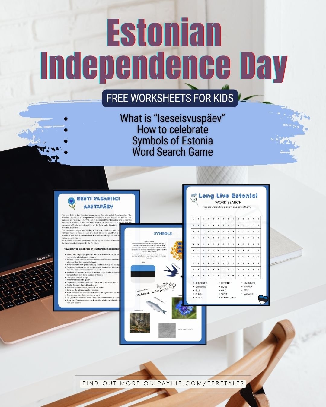 Free Worksheets for your kids to learn about the Estonian Independence Day: