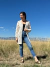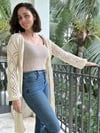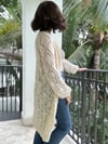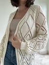 Despite the complexity of the lace, the cardigan comes together quickly due to the worsted weight yarn and loose gauge.