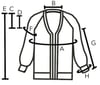 Please see the schematic and size chart in the photos for all the measurements. The first 4 rows are the body measurements the cardigan was graded to fit, A-H are the finished garment measurements.
