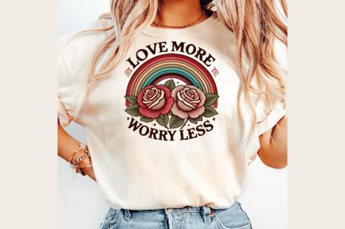 Spread the message of love and positivity with the Love More Worry Less T-Shirt Sublimation Design—a must-have for boho lovers this Valentine’s season! 🌈🌸
