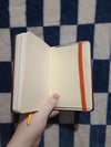 This notebook has an elastic band, ribbon and a pocket at the back for loose papers or notes!