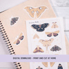 A beautiful set of moth stickers in dusky shades of yellow and violet. Includes 10 different kinds of painted moths including the popular luna moth, silk moth, atlas moth, and more.