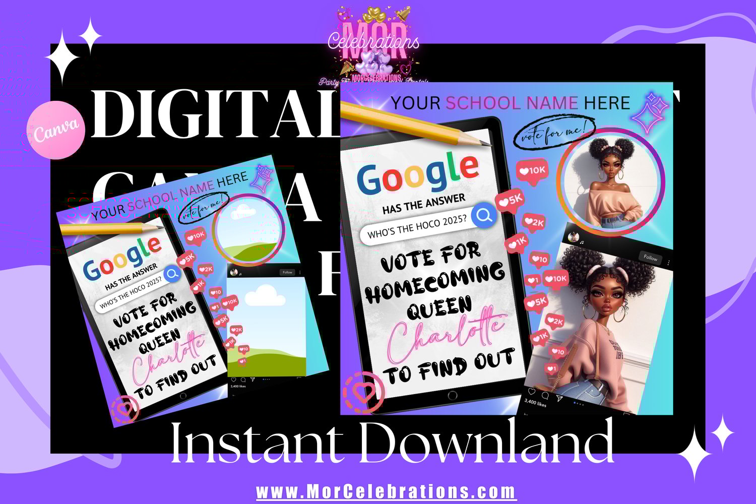 At MorCelebrations, we specialize in creating unforgettable moments, ensuring your campaign leaves a lasting impression. Trust us to provide a high-quality, impactful solution to captivate your audience and secure those all-important votes. Make your homecoming exceptional with our expertly crafted Google Homecoming Flyer.