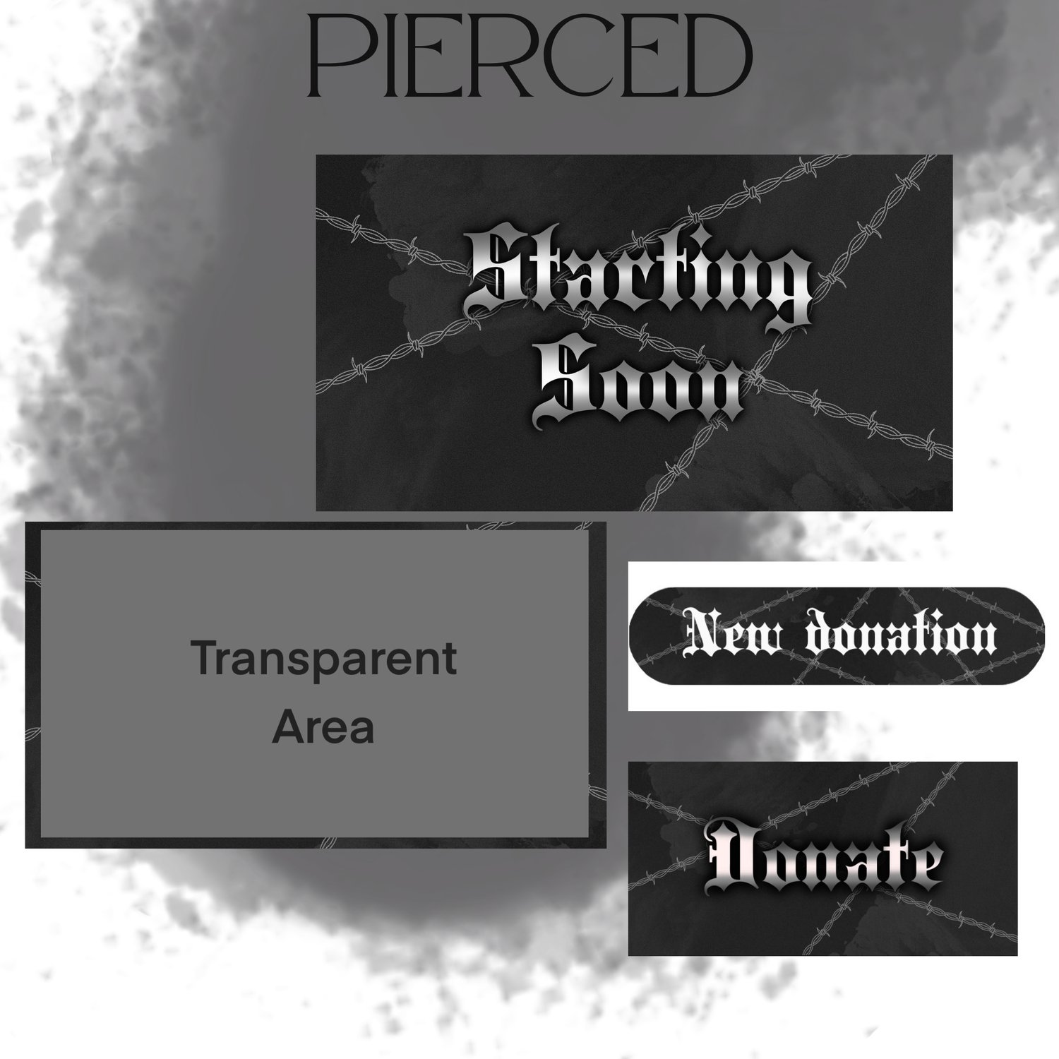 Upgrade your stream with this pierced stream overlay pack, designed for creators who want a cohesive, eye-catching look. This set is perfect for streamers who love edgy styles and want their stream to feel polished and on-brand.