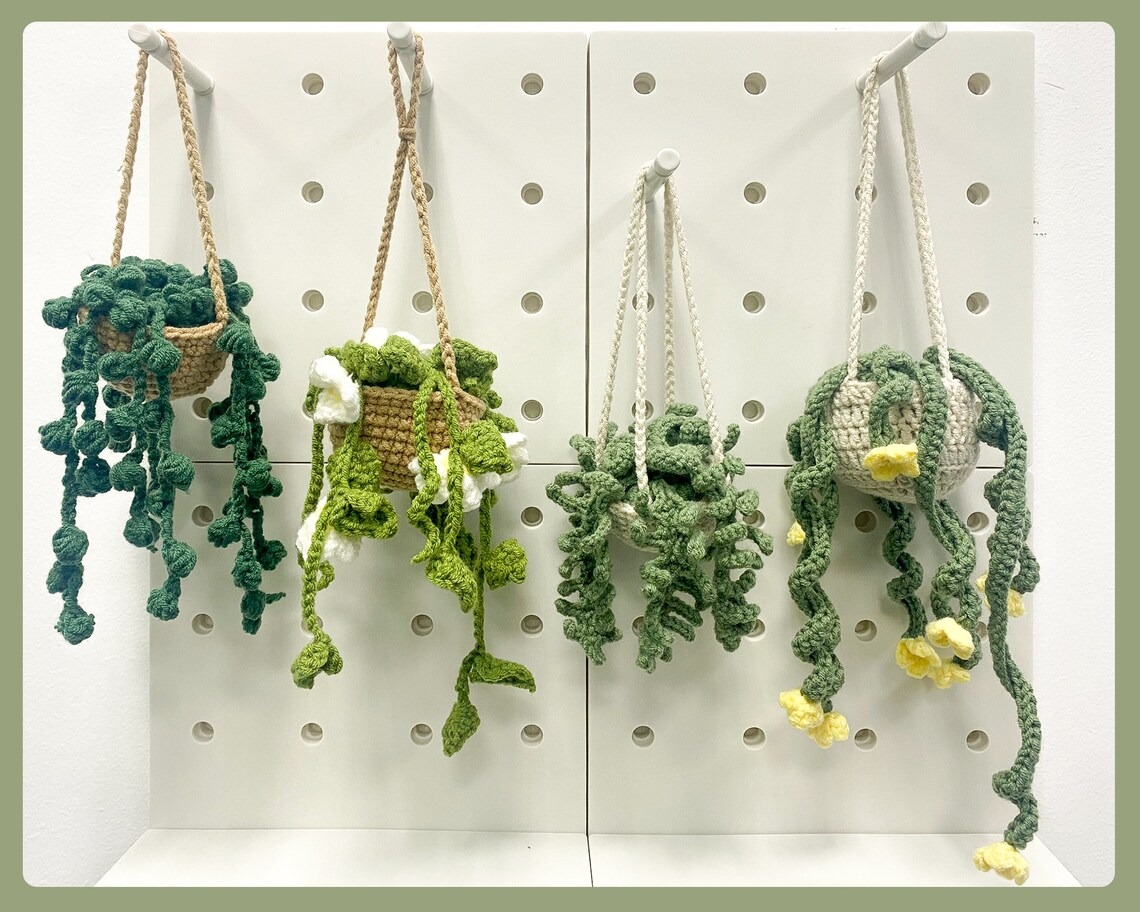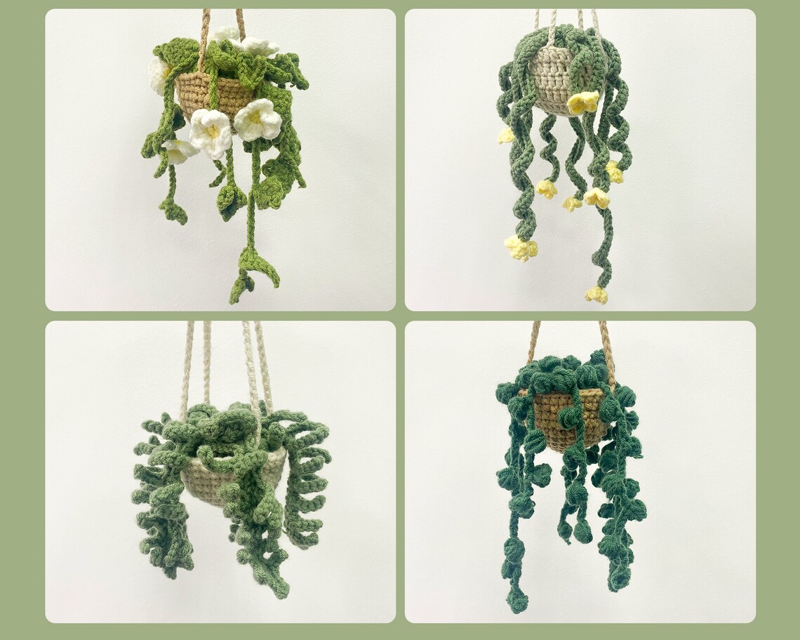 Set of 4 Pattern - Drooping Flower Basket , Crochet Daisy Plant Hanging, Succulent Potted Plant, Fern Plants Car Hanging, PDF Pattern