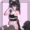 pasties (supporter free), choker, garter, fishnets, cat plushie, glasses, and necklaces