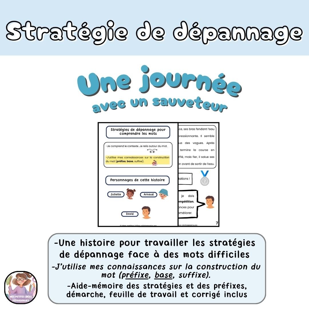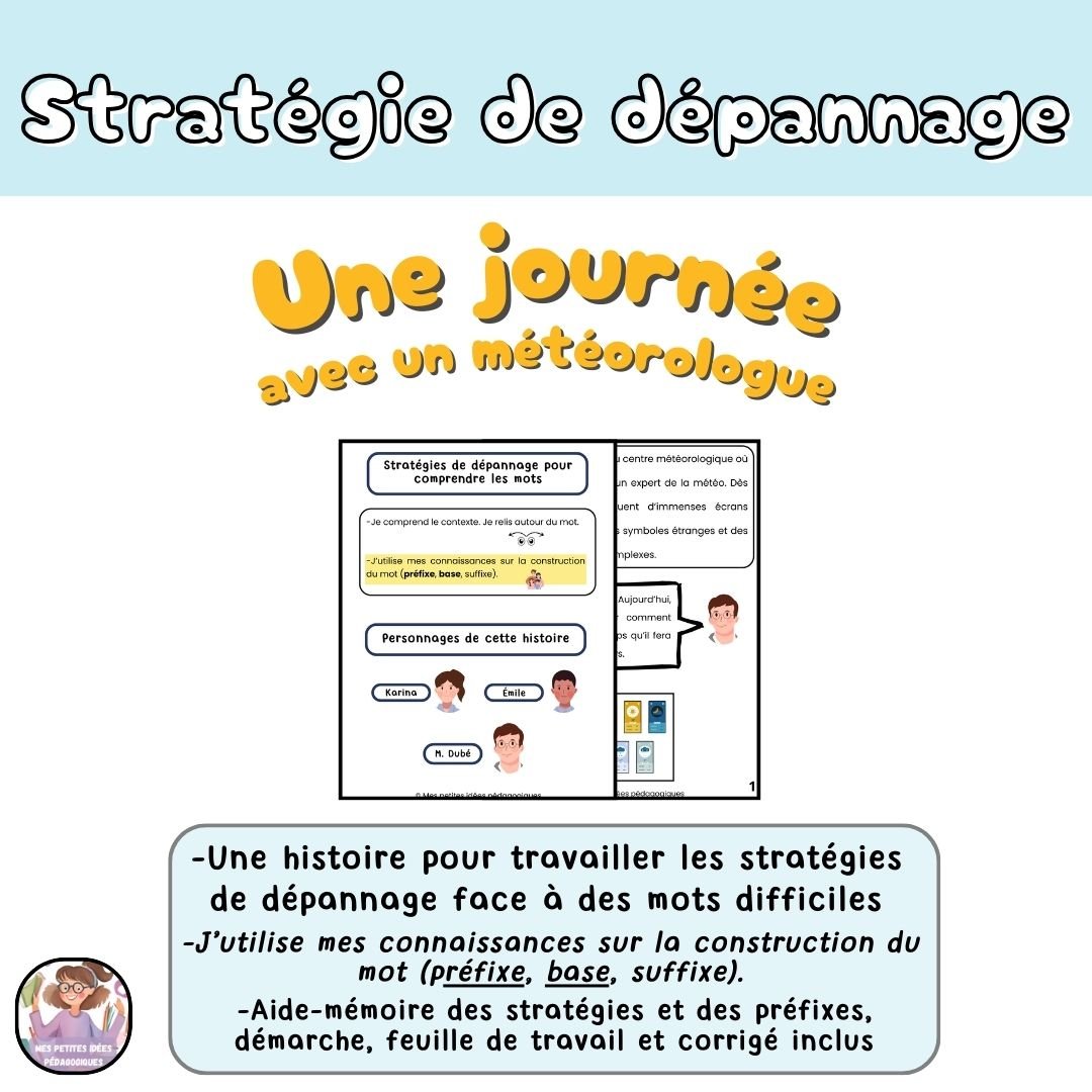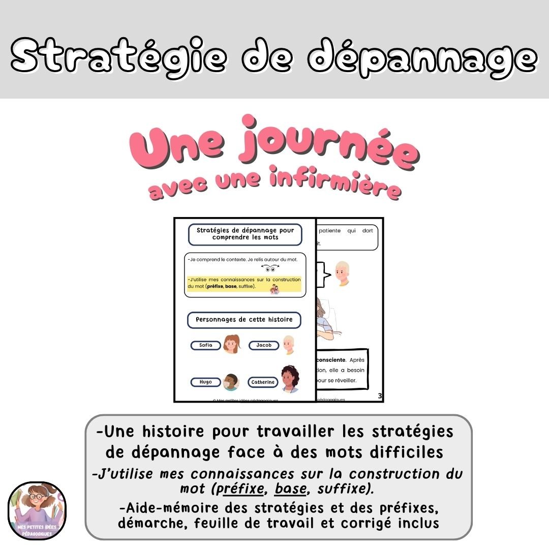 Ces histoires permettent aux élèves de travailler la stratégie de dépannage : J'utilise mes connaissances sur la construction du mot (préfixe + base). Les élèves en apprendront également plus sur quatre métiers lors de cette lecture.