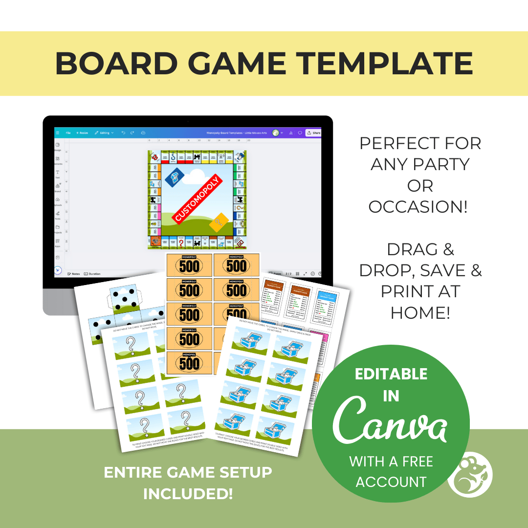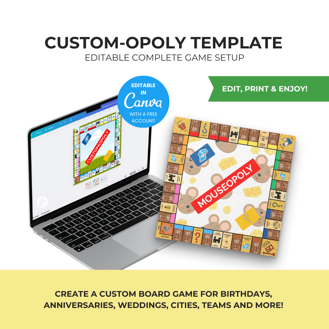 Create your very own fully customized board game for any occasion! Whether you’re planning a holiday game night, a birthday surprise, an inside-joke challenge, or a fun family gift, this editable board game template makes it easy to design something unforgettable.