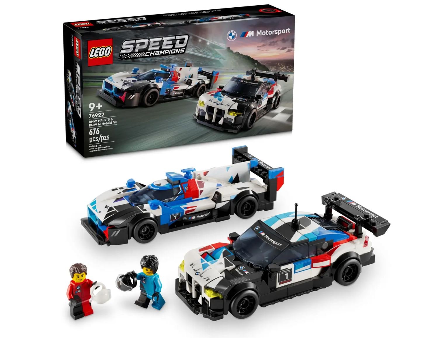 This poster is specially designed to highlight the LEGO Speed Champions BMW M Hybrid V8 (#76922).