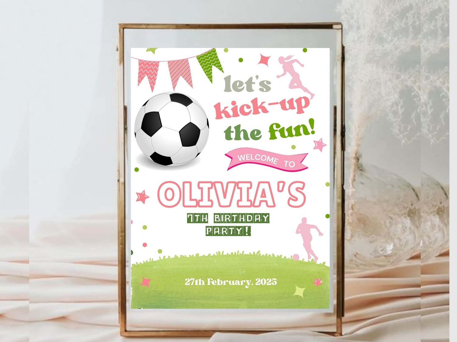 Editable Pink Soccer Birthday Party Welcome Sign Template, Girls Soccer Birthday Party Custom Sign Template, Soccer Welcome Sign, Soccer Custom Sign, Football Girls Birthday Party Decorations