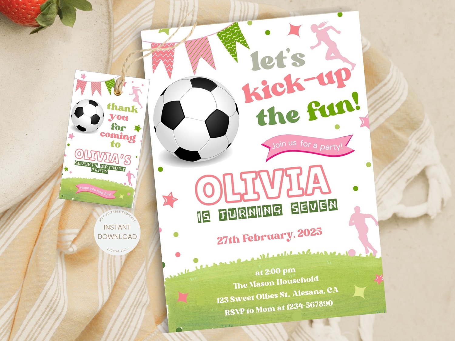 Girls Soccer Birthday Welcome Sign Template Modern Soccer Pink Birthday Party Any Age Digital Editable Canva Template, Girls Football Party