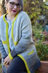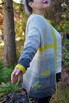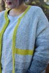 FadeOut ist eine lässige Strickjacke, die mit nachträglich angestrickten versteckten Taschen und doppelten Säumen rund-herum gearbeitet wird, und dabei ganz ohne Verschluss auskommt.