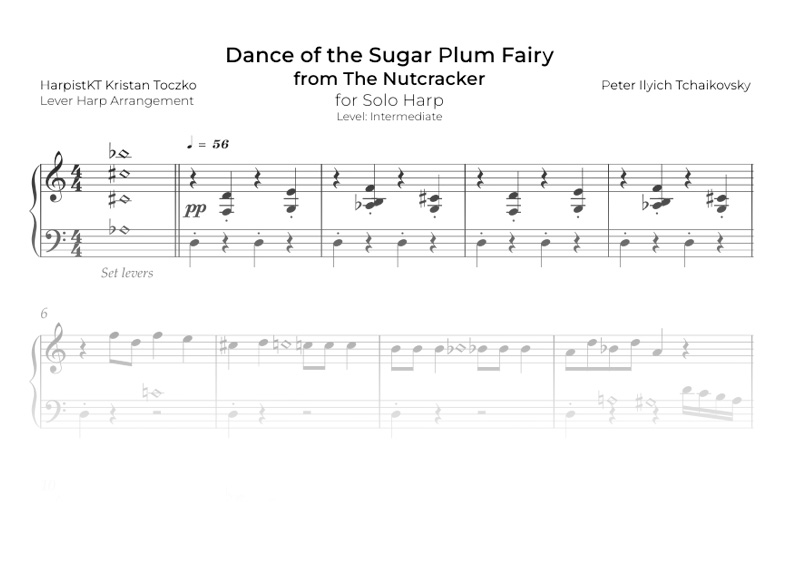 Dance of the Sugar Plum Fairy from "The Nutcracker" - Tchaikovsky (lever harp, early intermediate)