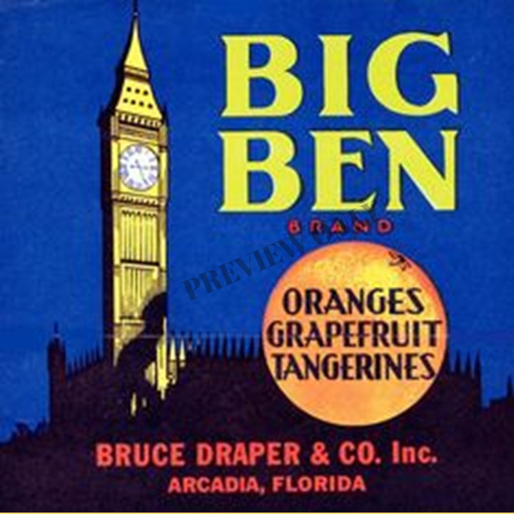 Digital image of Big Ben brand Florida Citrus Crate Label