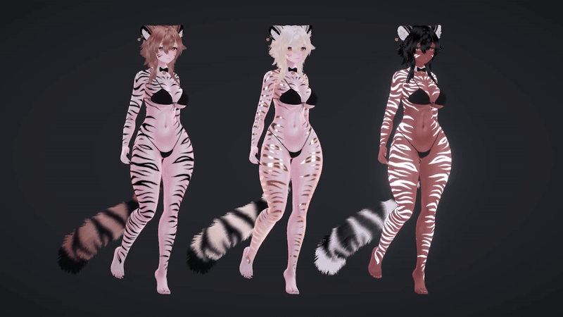 - 4 premade fur textures (made from CicieaaaVR’s FREE Hair Texture as base + my tiger stripe edits)