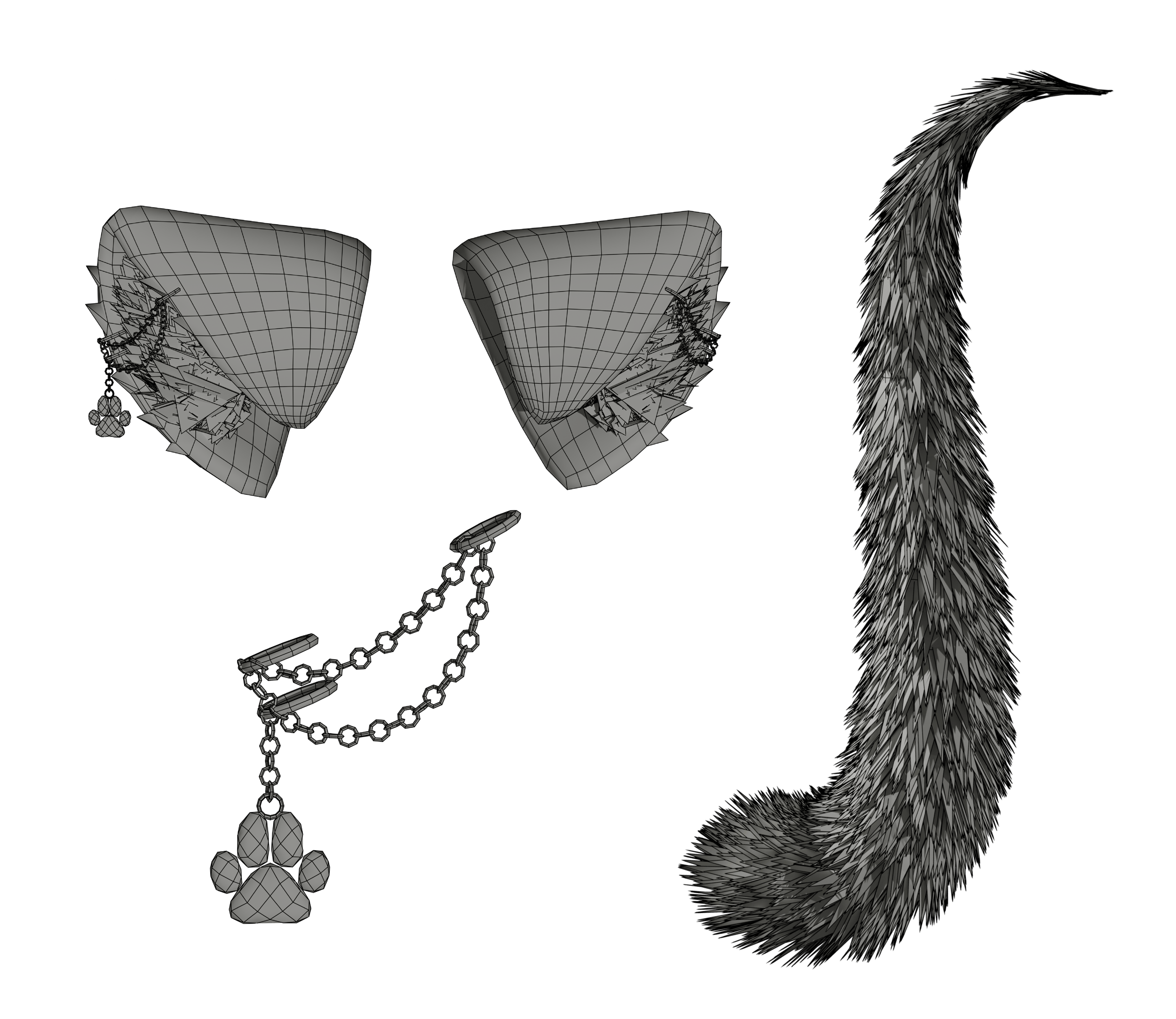 The showcase model is NOT included. Each package only contains the specific items listed in its description (e.g., Hair, Ears & Tail, Tattoo, or Full Bundle). No additional assets beyond those stated are included.