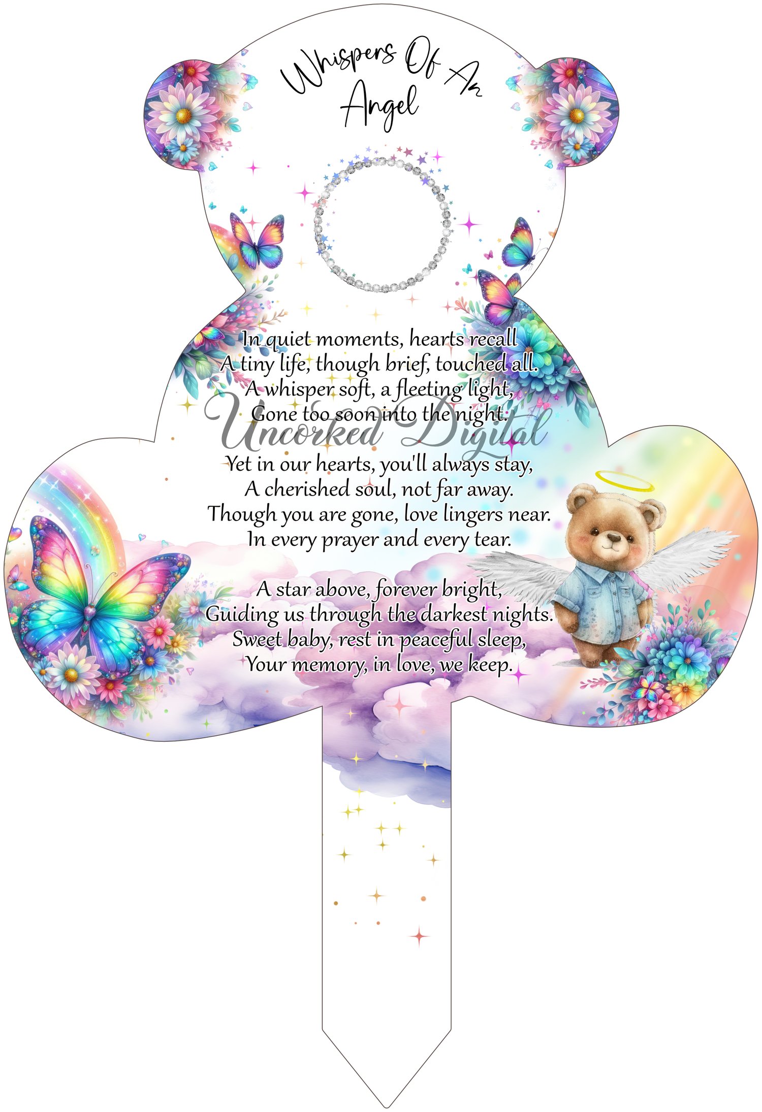 Whispers of an Angel memorial teddy grave marker design with and without photo space (woodform)