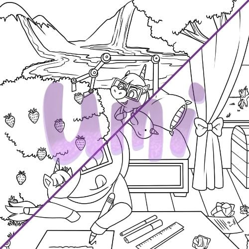 Enjoy two coloring sheets! Umi picking strawberries and Umi working in her room. These coloring sheets give a fantastic sneak peek into the upcoming Umi activity book!