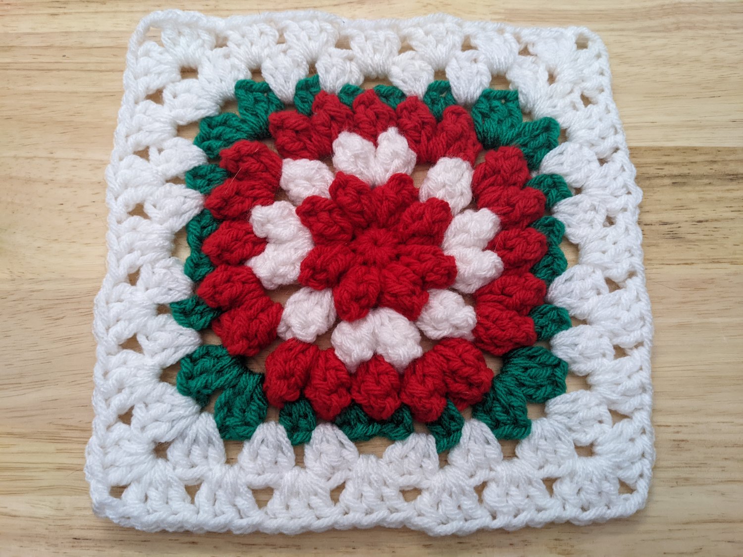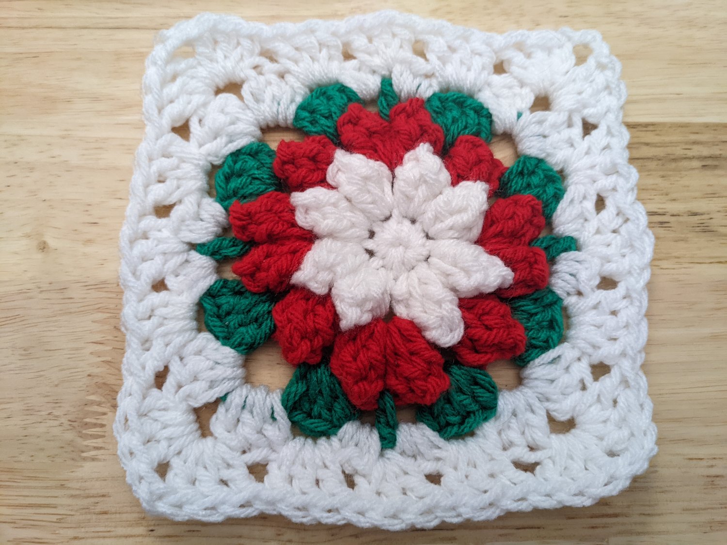 This pattern starts with the flower motif, has a round of shaping to make it a square, and then it is a straight granny square stitch from then on, so you can easily make it as big as you want!