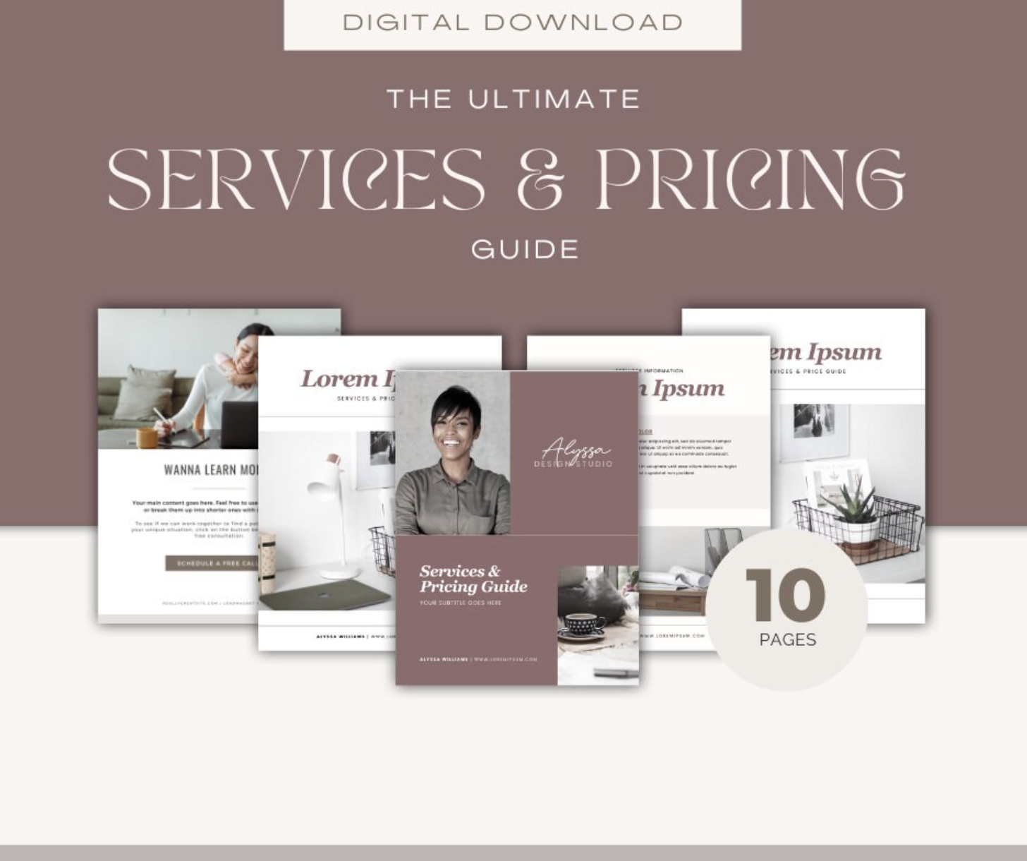 As a service-based business owner, your services and pricing guide will be a very important part of your business. It outlines the range of services offered and provides transparency on pricing, ensuring a smooth and efficient working relationship with potential clients. This amazing template will save you a lot of time when creating your own professional services & pricing guide.
