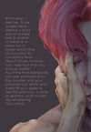 You think that everybody can see it, the way you feel, and hold onto the counter until your knuckles turn white and finally, you lift your gaze to see the pink hair, a smile so grateful, and curved lips whispering, “You came.”