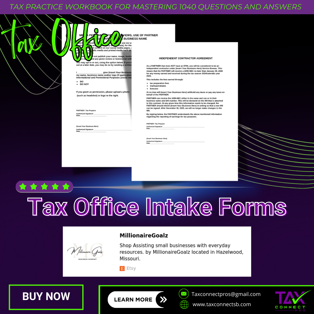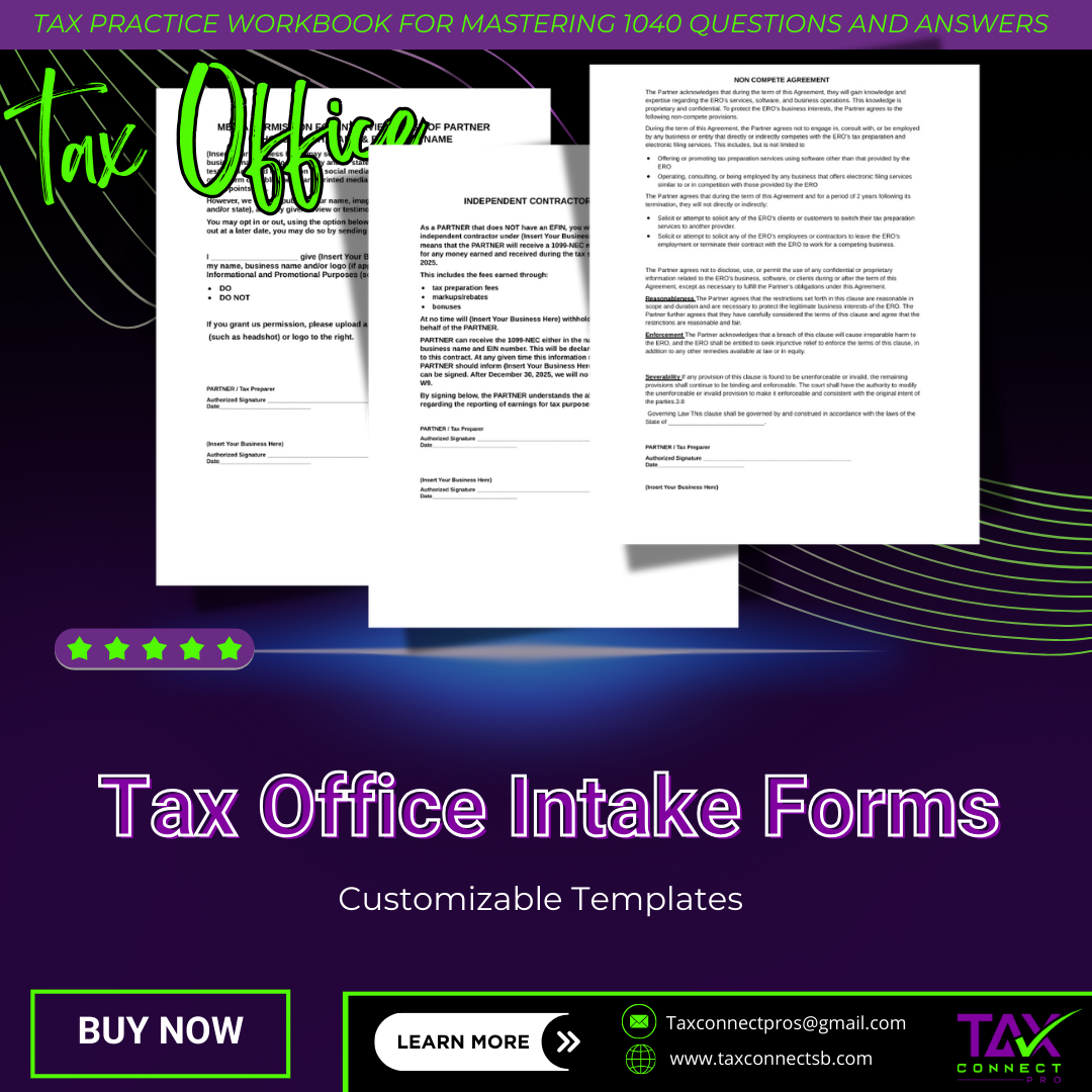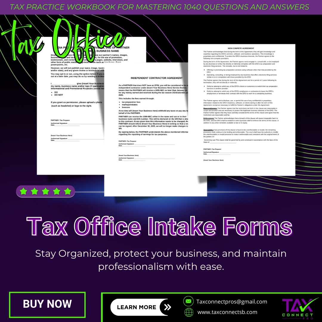 Boost your office's efficiency and professionalism with our all-in-one bundle of essential tax office templates. This bundle is designed to keep your processes organized while ensuring a seamless experience for both you and your clients.