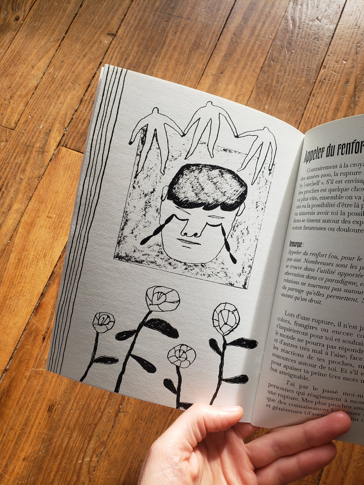 Simple à lire, facile à emporter, ce Petit Manuel de Survie à la Rupture est un texte engagé ayant pour sujet la rupture et les peines qui s’en suivent. L’auteur·e y mêle conseils pratiques, partage d’expériences, théorie de psychologie clinique et critique des normes sociales et de leurs effets sur nos réflexes.