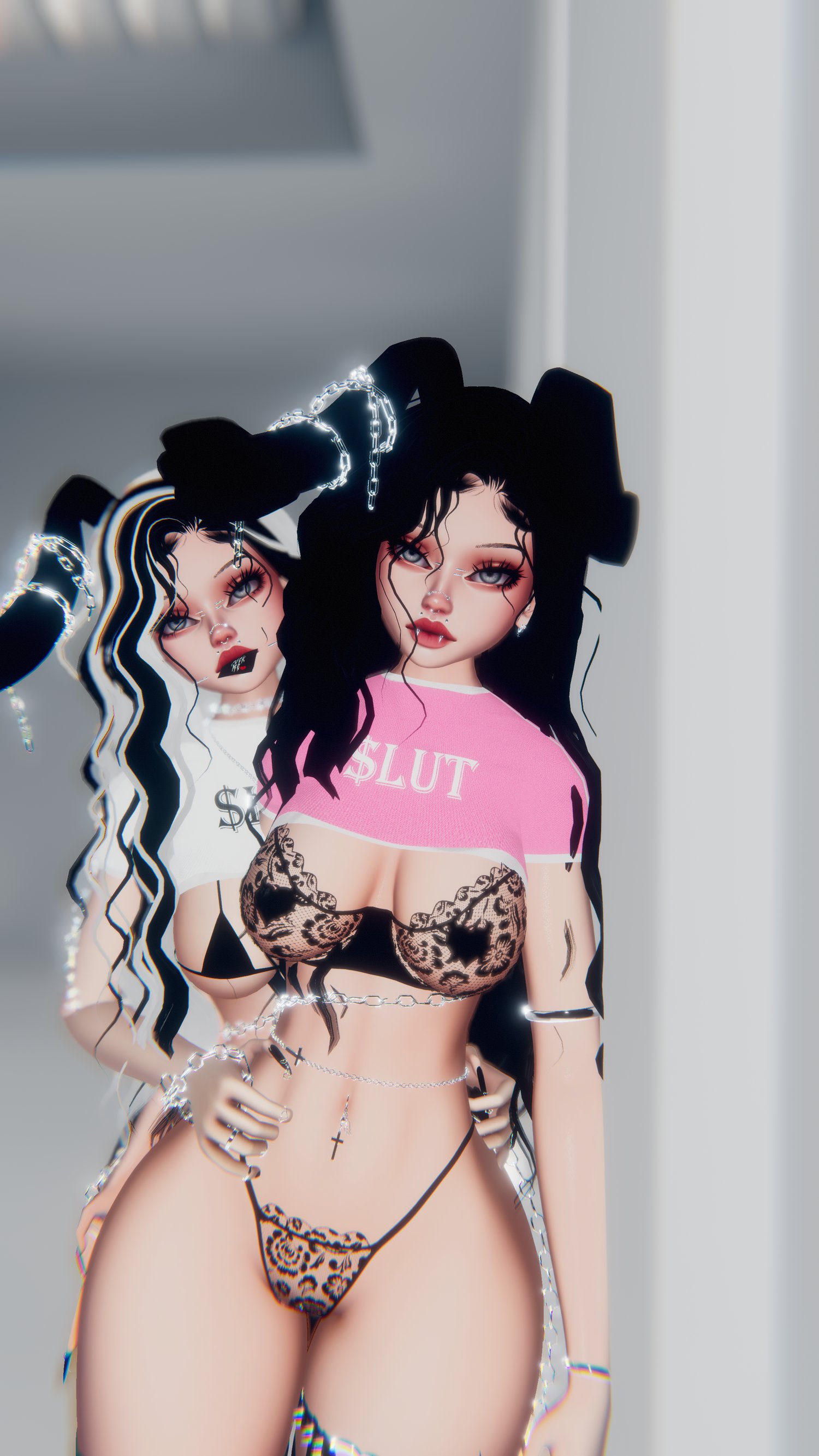 Head ( my sculpt no reuse) , Body ( my scuplt no reuse), Face & Eye Textures , Hair, Bunny Ears , Bun Tail , Face Piercings, Mouth Card? , Earrings , Body Chain , Waist Chain & Belly Ring , Nails , Lace Set, Skinny Jeans, Fishnets , Bear Backpack, Pasties, $lut Shirt, Bikini , Thigh high boots, Stud Boots, Daddy Chain , Beanie , Ripped Sweater , Garter? , Arm Metals , Sticky note,