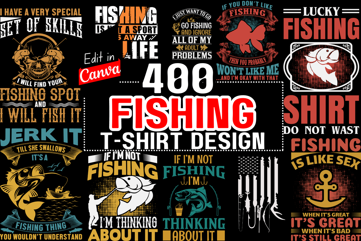 400 Fishing Tshirt Design Bundle For Canva | Fishing Editable Tshirt Design For Your Print On Demand Business | Fishing Quotes SVG
