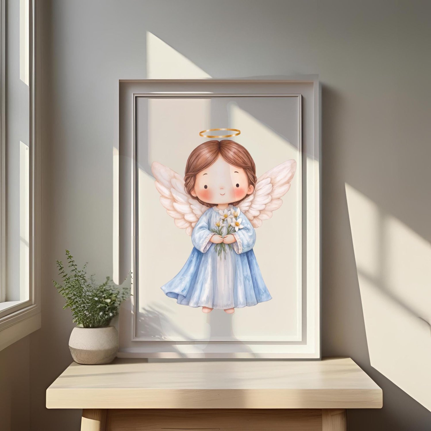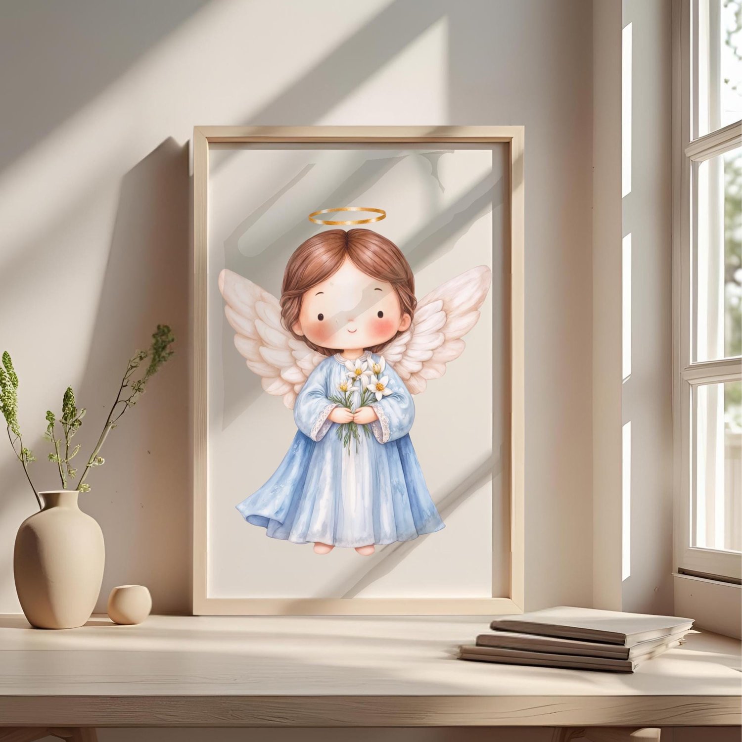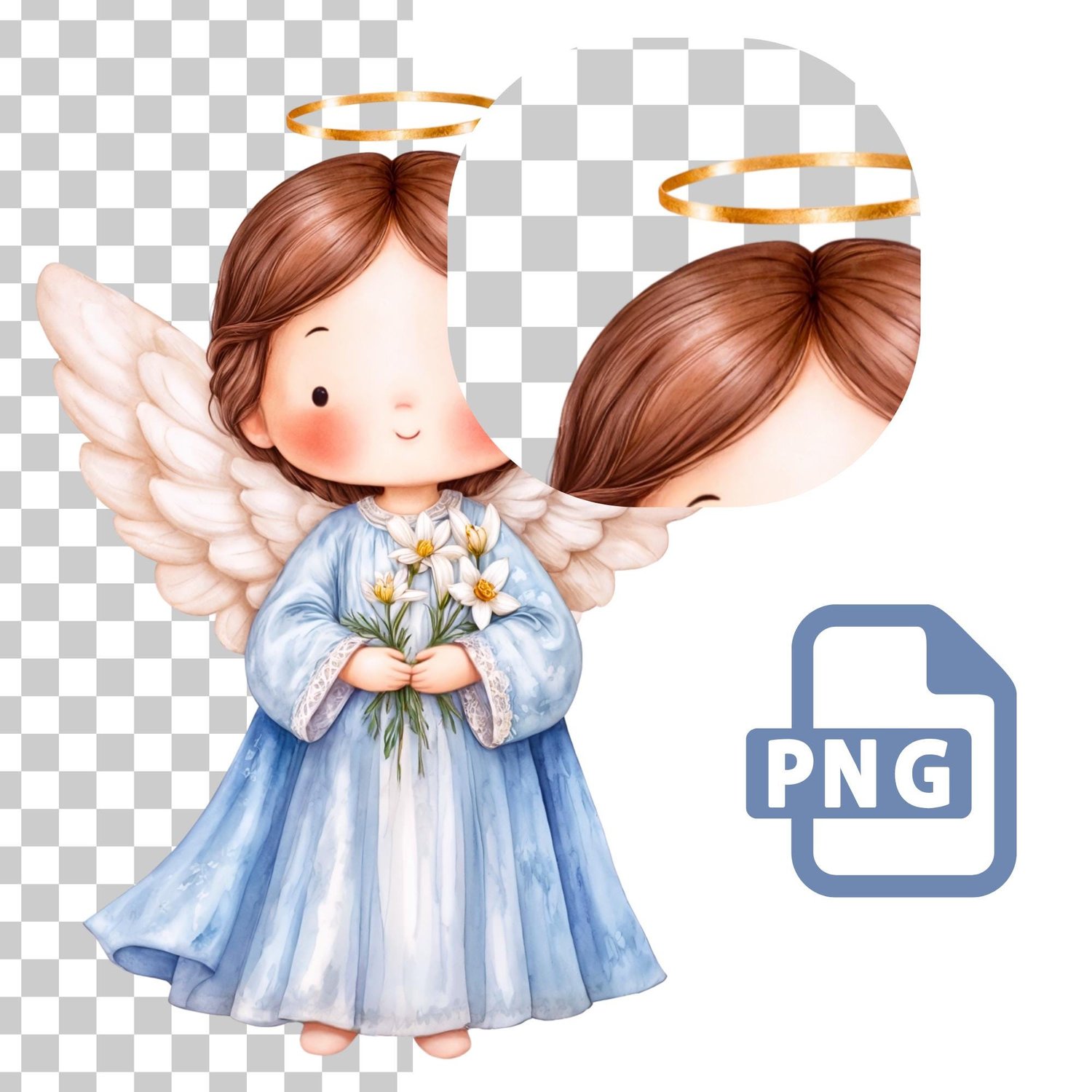 Celebra la figura celestial de San Gabriel Arcángel, el Mensajero de Dios y Arcángel de la Anunciación, con esta hermosa ilustración digital en acuarela. Su presencia trae noticias divinas, alegría y esperanza, tal como lo hizo al anunciar el nacimiento de Jesús a la Virgen María. Capturada en un estilo tierno y delicado, esta imagen (junto con elementos complementarios) es perfecta para una variedad de proyectos creativos y devocionales.