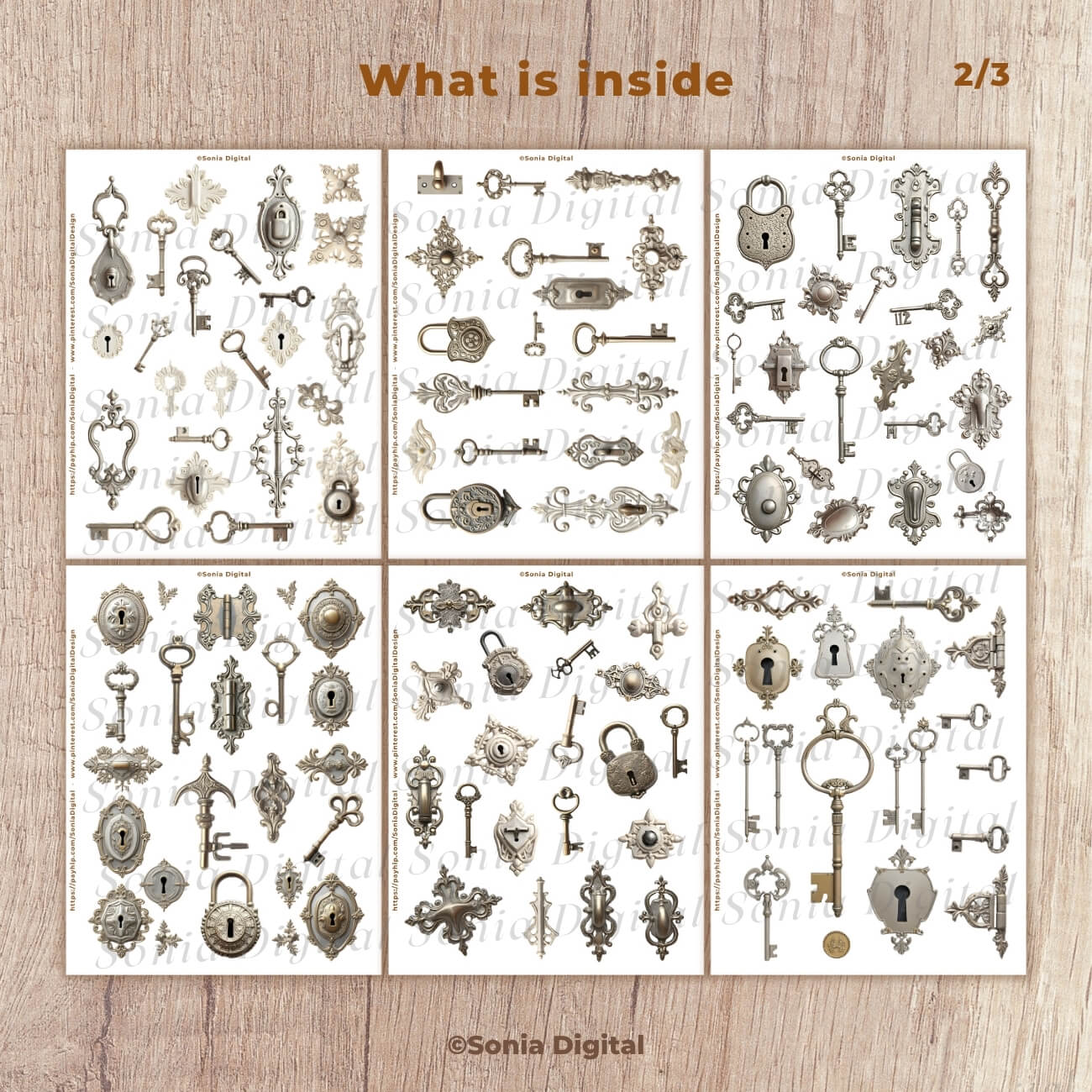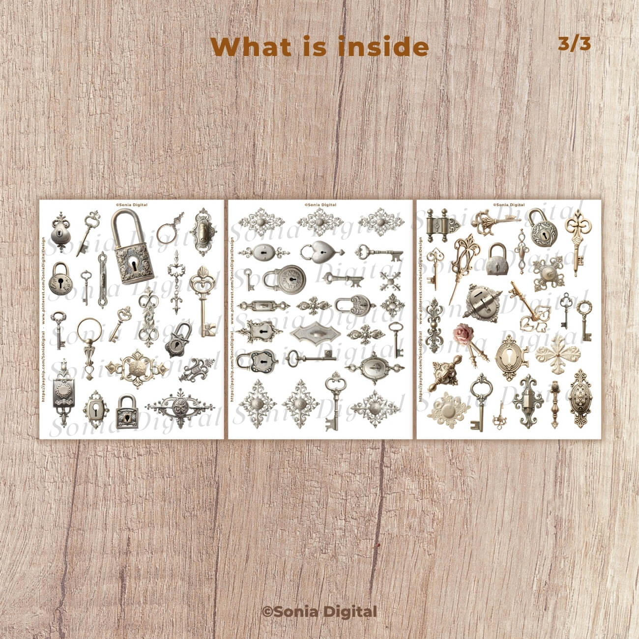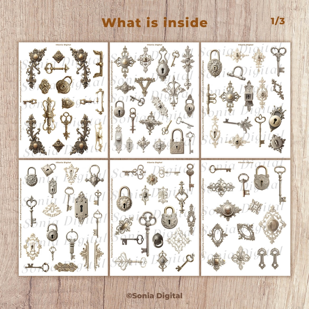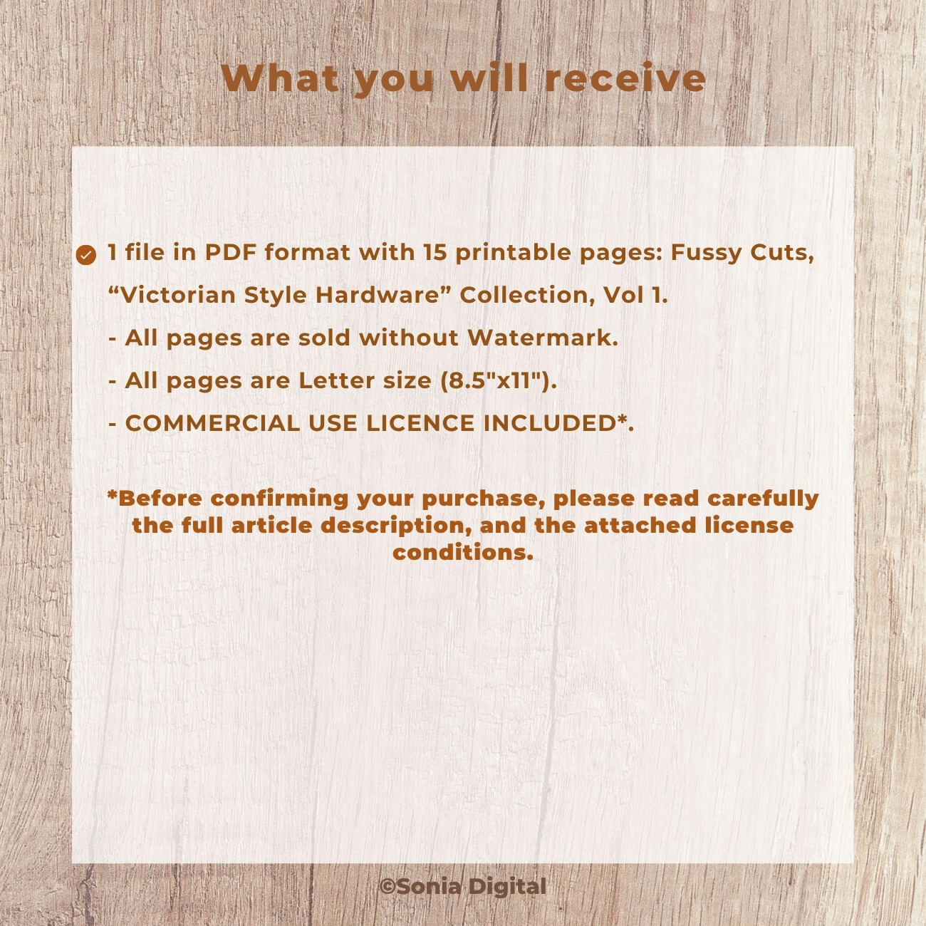 🔸15 printable pages containing “Victorian Style Hardware” Collection Vol 1. In Letter size, 8.5”x11”. All pages are sold watermark-free. Fussy Cuts Sizes vary. Commercial use license included*.
