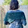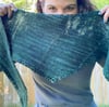 Indomitable Spirit is a fingering weight boomerang shawl worked in garter stitch on the bias. Stitches are dropped (gasp!) from one edge to another. A crochet hook is then used to “ladder up” the stitches and create a chain along the surface. The shawl is finished off with a larger chain of stitches along the border to tie it all together. Itʼs easier than youʼd think, and youʼre guaranteed to impress all your knitting friends with your confidence.