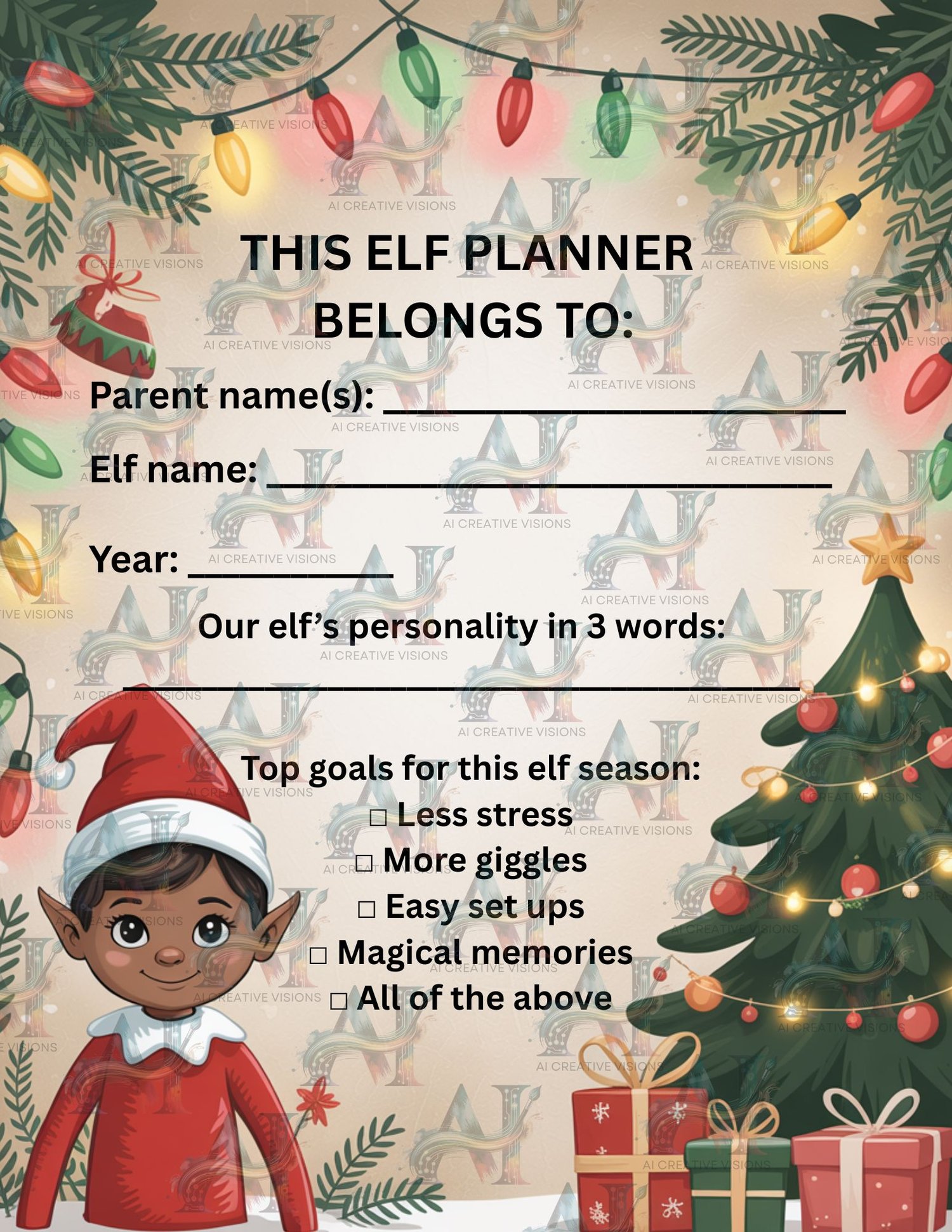 - Cover Page: Track your elf's name, personality, and top season goals.
